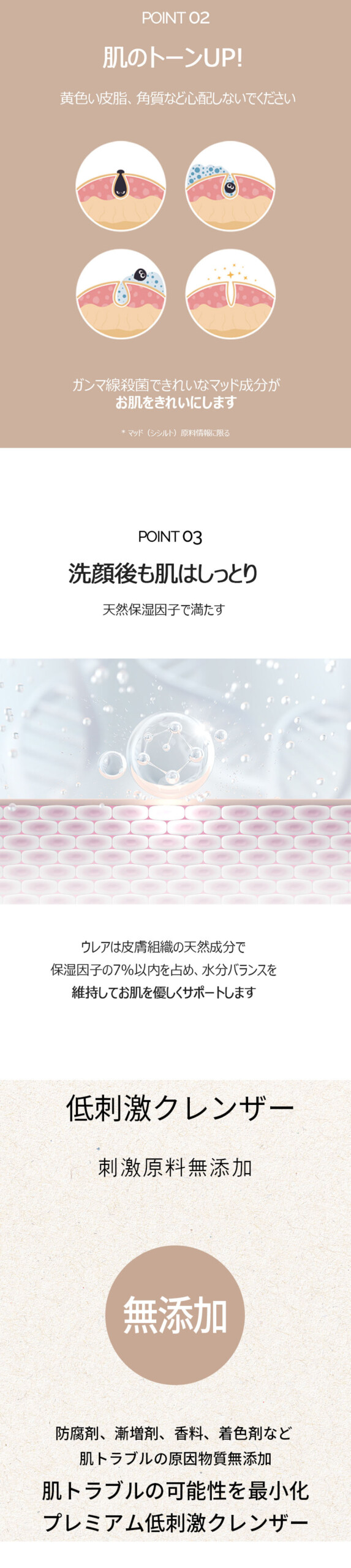 2. 肌に優しい。 生分解(環境にやさしい)高級洗顔原料の使用と 防腐剤、香料無添加