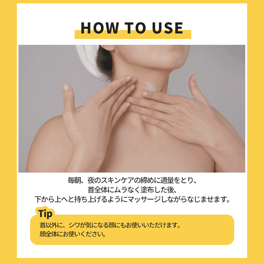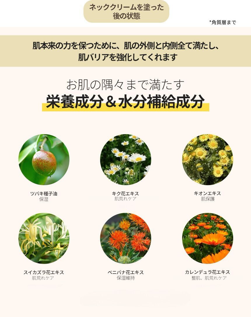 アデノシンが肌のたるみ改善に役立つネクトーンアップケアクリームです。 天然植物エキスで首の肌を華やかでしっとりケアします。