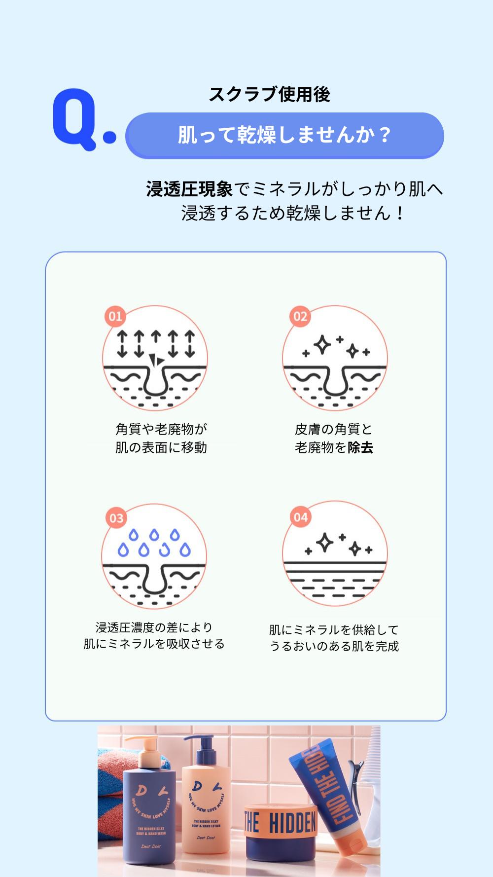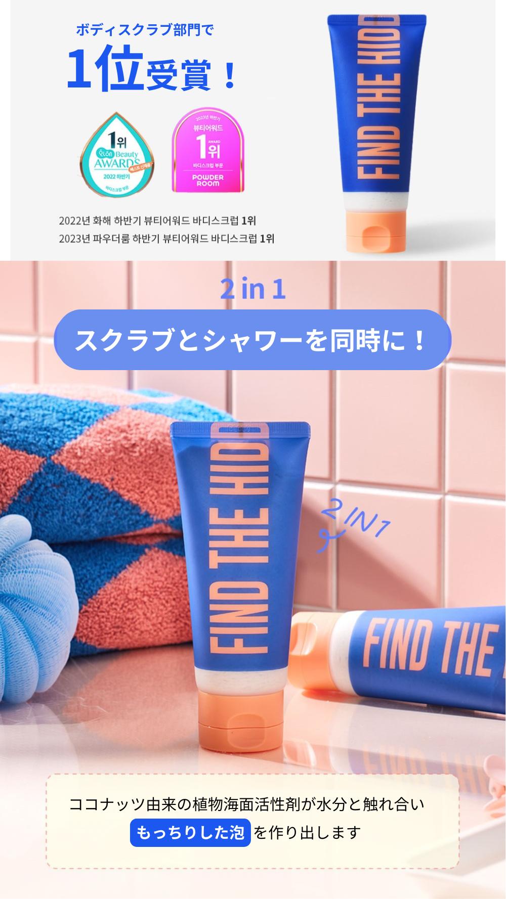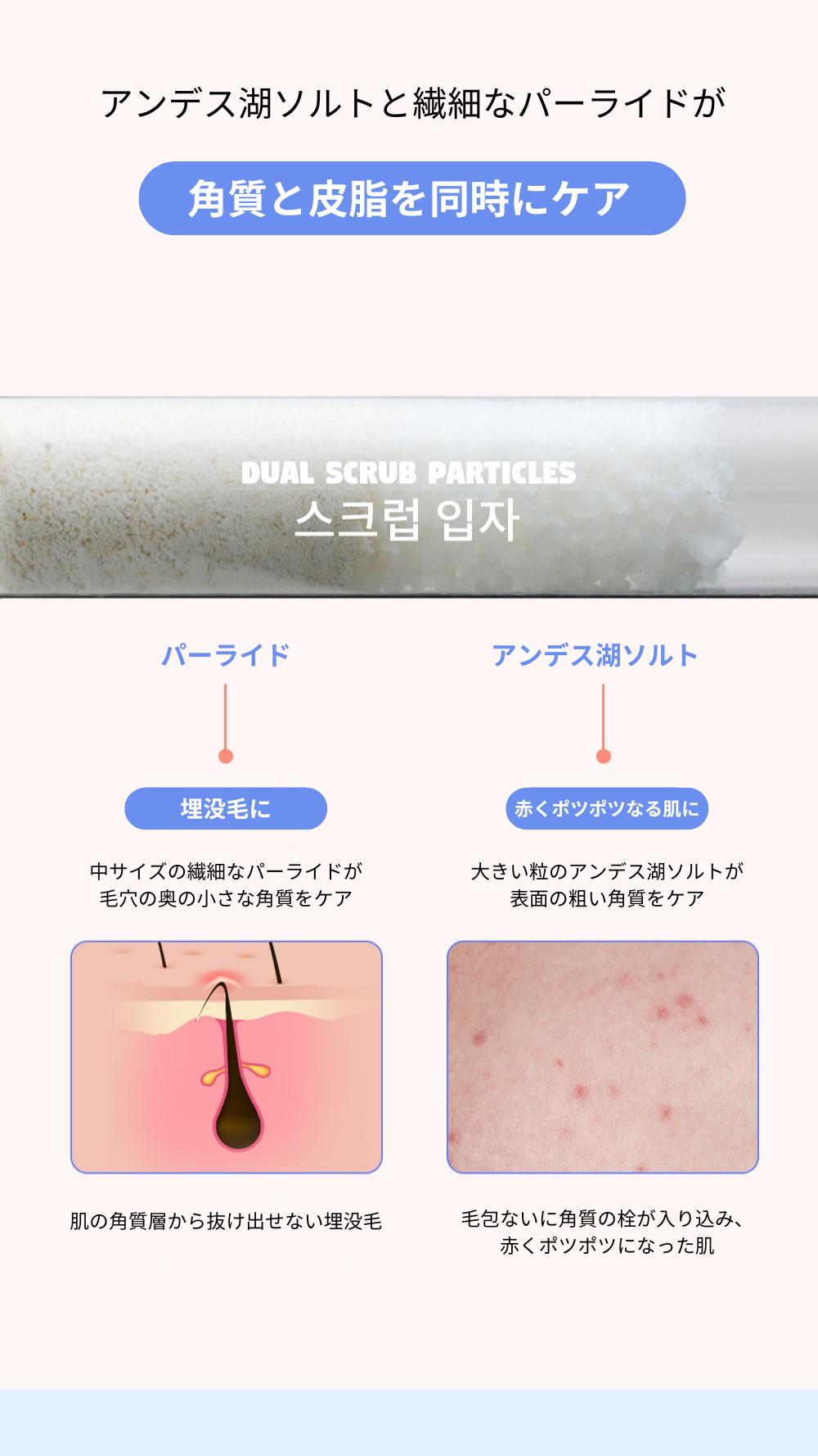 大きくて小さい2つの粒子が肌を滑らかにする ウォッシュ機能まで備えた2in1スクラブです。